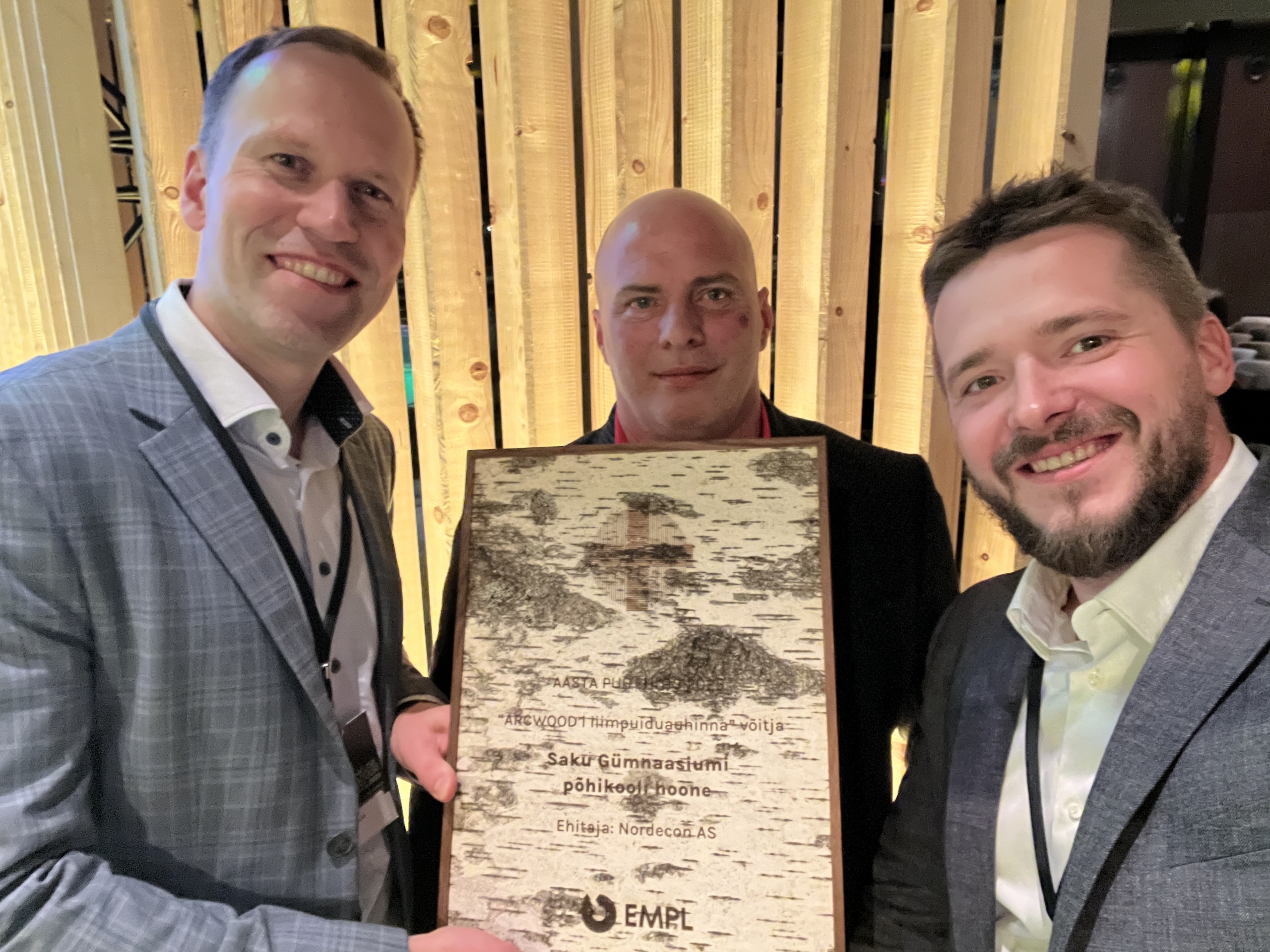 Eesti Metsa- ja Puidutööstuse Liidu korraldatud aasta puitehitiste konkursil pälvis Arcwoodi aasta CLT- ja liimpuiduauhinna Saku Gümnaasiumi põhikooli hoone.